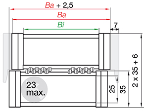 Please note: 14mm must be added to the outer width of the chain for the width of the two gliding shoes!