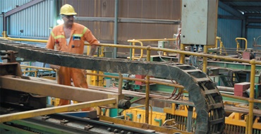 Tube handling plant provides an igus® plastic e-chain®. e-chain® ensures high stability and reliability in pipehandling.