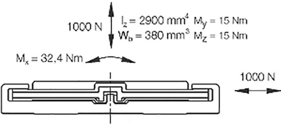 | Part No. | Max. rail lengths | a | C4 | A3 | C5=C6 | h | h1 | K1* | ly | lz | Rail weight | Price / m | ||