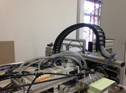 This high-frequency welding apparatus moves in a working area of 8 x 2,5 metres and rotates about 360 degrees.