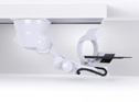 This wall bracket allows the TV set to be swivelled through 120 degrees. Up to now, cables simply hung loosely and became tangled after several swivelling movements, causing the cables to break.